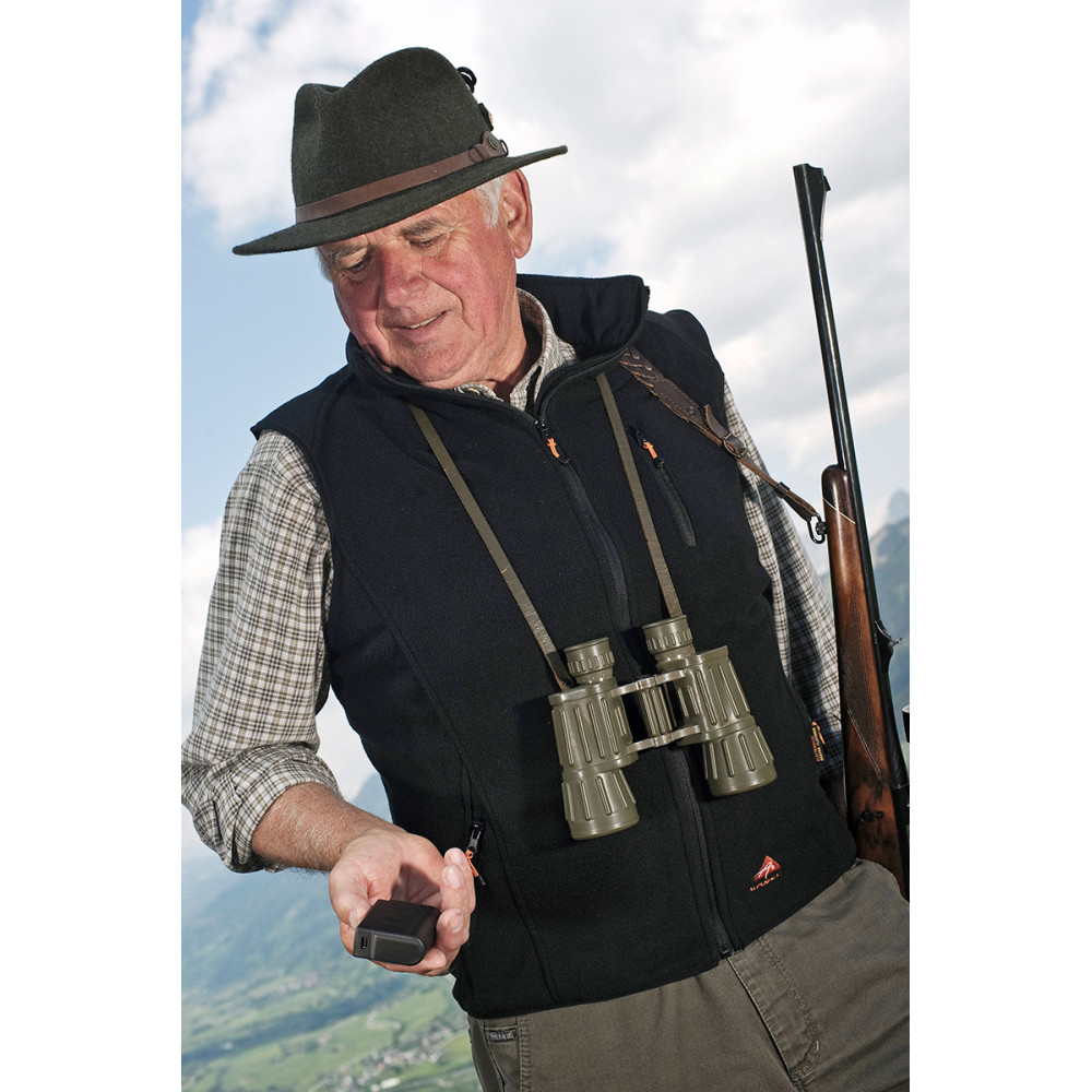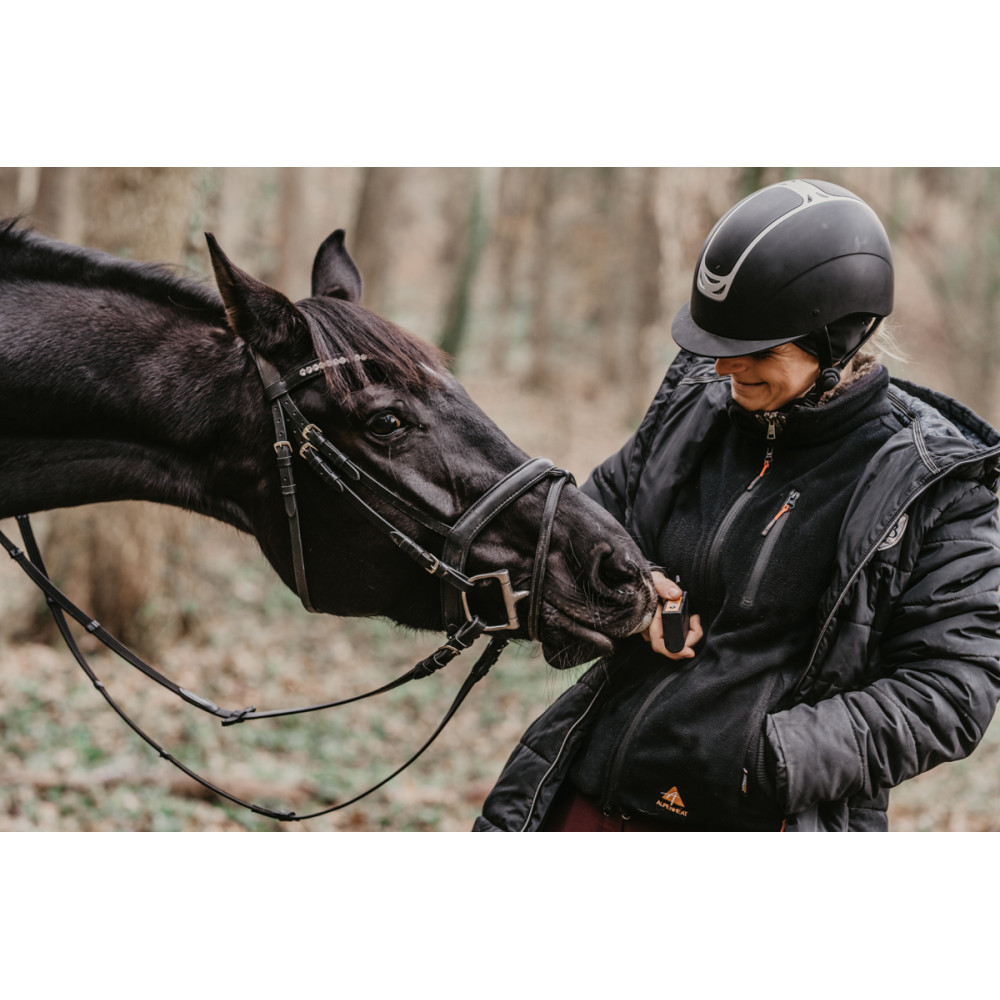 Unverzichtbar besonders an kühleren Tagen ist die innovative beheizte Weste von ALPENHEAT. Die Heizweste FIRE-FLEECE überzeugt durch ausgeklügelte Funktionsdetails. Diese bietet vier Heizstufen mit einem speziellen Heizzellensystem aus Thermal-Fasern, die im Rückenbereich des Kleidungsstücks eingearbeitet sind und wärmt je nach Stufe für 2 bis 8,5 Stunden. Die gewünschte Wärmestufe lässt sich entweder direkt über die APP auf dem Mobilgerät auswählen oder per Knopfdruck am Akku. Der Akku wird in der Außentasche der Weste verstaut.