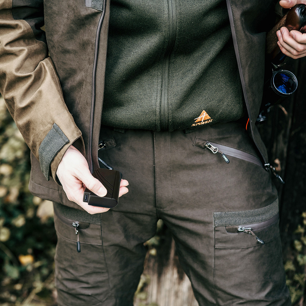 Die ALPENEHAT Fire-Performance ist das perfekte Kleidungsstück für alle, die sich gern in den kalten Monaten im Freien aufhalten. Die Heizweste überzeugt durch ausgeklügelte Funktionsdetails. Sie hat 4 Heizstufen mit einem speziellen Heizzellensystem aus Thermal-Fasern, die im Rückenbereich des Kleidungsstückes eingearbeitet sind. Mit 4 verschiedenen Heizstufen für 2 bis 8,5 Stunden wohlige Wärme, bevor der Akku wieder aufgeladen werden muss. Die Wärmeeinstellung kann über die Alpenheat APP auf Ihrem Mobilgerät oder durch Drücken des Druckknopfes auf dem Akkupack reguliert werden.