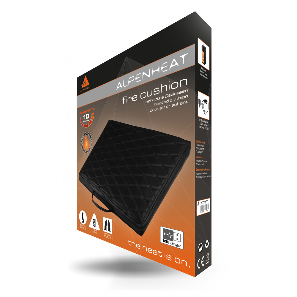 Le coussin chauffant ALPENHEAT est confortable et offre jusqu'à 10 heures de chaleur et de confort continus aux amateurs de plein air, aux spectateurs de sport (football, hockey sur glace, etc.), aux chasseurs et à bien d'autres encore!