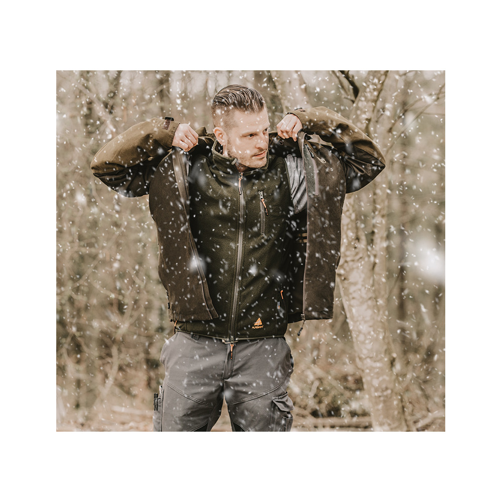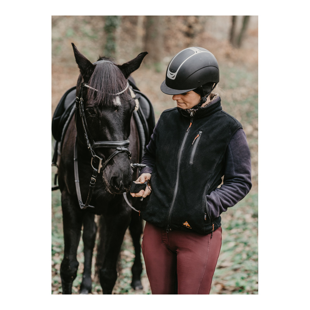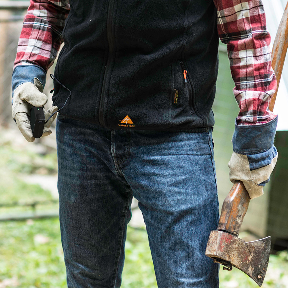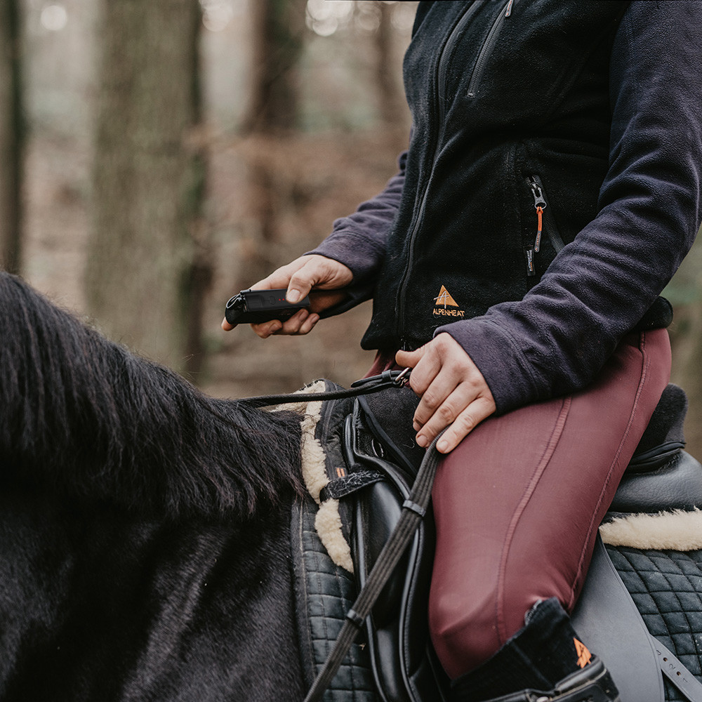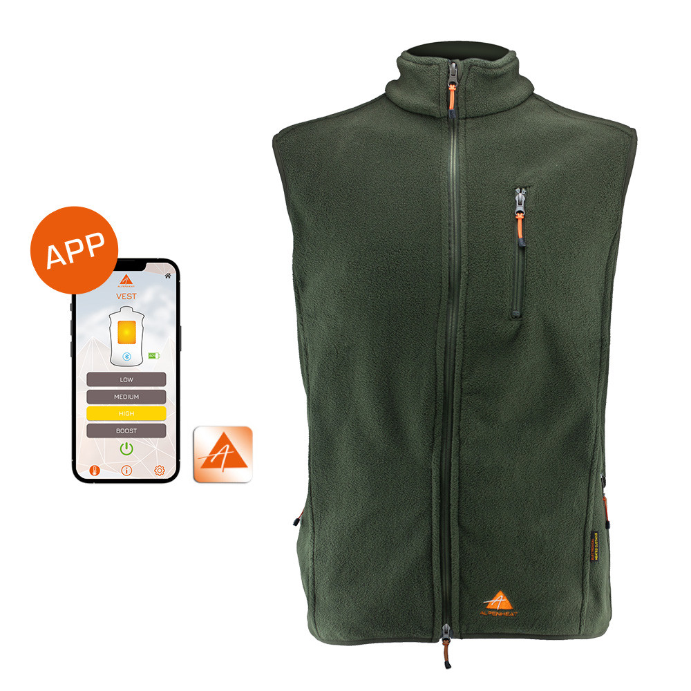 Le gilet chauffant innovant d'ALPENHEAT est indispensable, en particulier pour les journées plus fraîches. Le gilet chauffant FIRE-FLEECE convainc par ses détails fonctionnels sophistiqués. Celui-ci offre quatre niveaux de chauffage avec un système spécial de cellules chauffantes en fibres thermiques intégrées dans le dos du vêtement et chauffe pendant 2 à 8,5 heures selon le niveau. Le niveau de chaleur souhaité peut être sélectionné soit directement via l'APP sur l'appareil mobile, soit en appuyant sur un bouton de la batterie. La batterie se range dans la poche extérieure du gilet.
