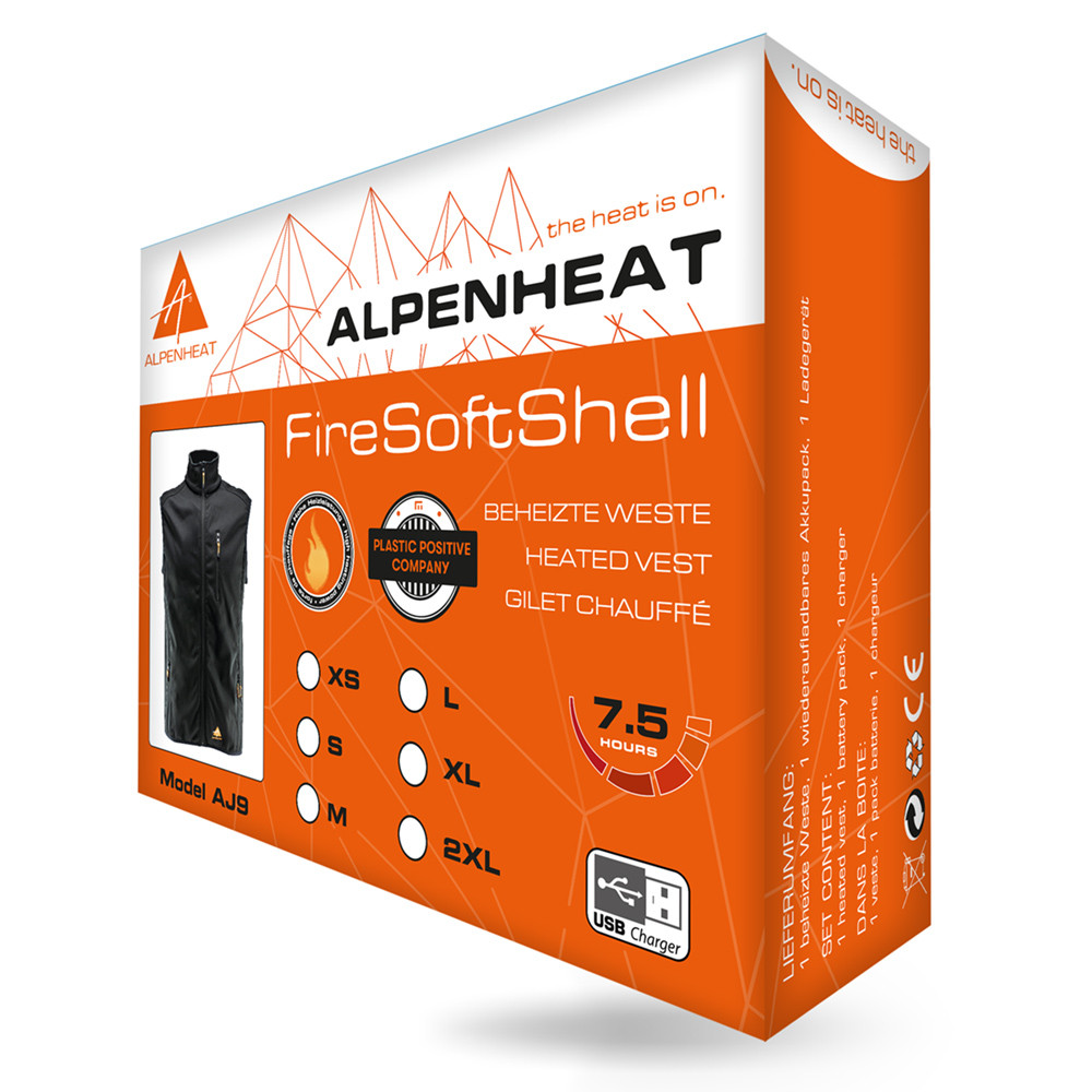 Le gilet chauffante innovante d'ALPENHEAT est indispensable, en particulier lors des journées plus fraîches. La veste chauffante FIRE-SOFTVEST séduit par ses détails fonctionnels sophistiqués et offre quatre niveaux de chauffage. Son système spécial de cellules chauffantes en fibres thermiques est intégré dans le dos. Le réglage de la chaleur peut être ajusté via l'application Alpenheat sur votre appareil mobile ou en appuyant sur le bouton-poussoir situé sur la batterie. Selon le niveau de chauffage, la veste chauffe pendant 2 à 8,5 heures.